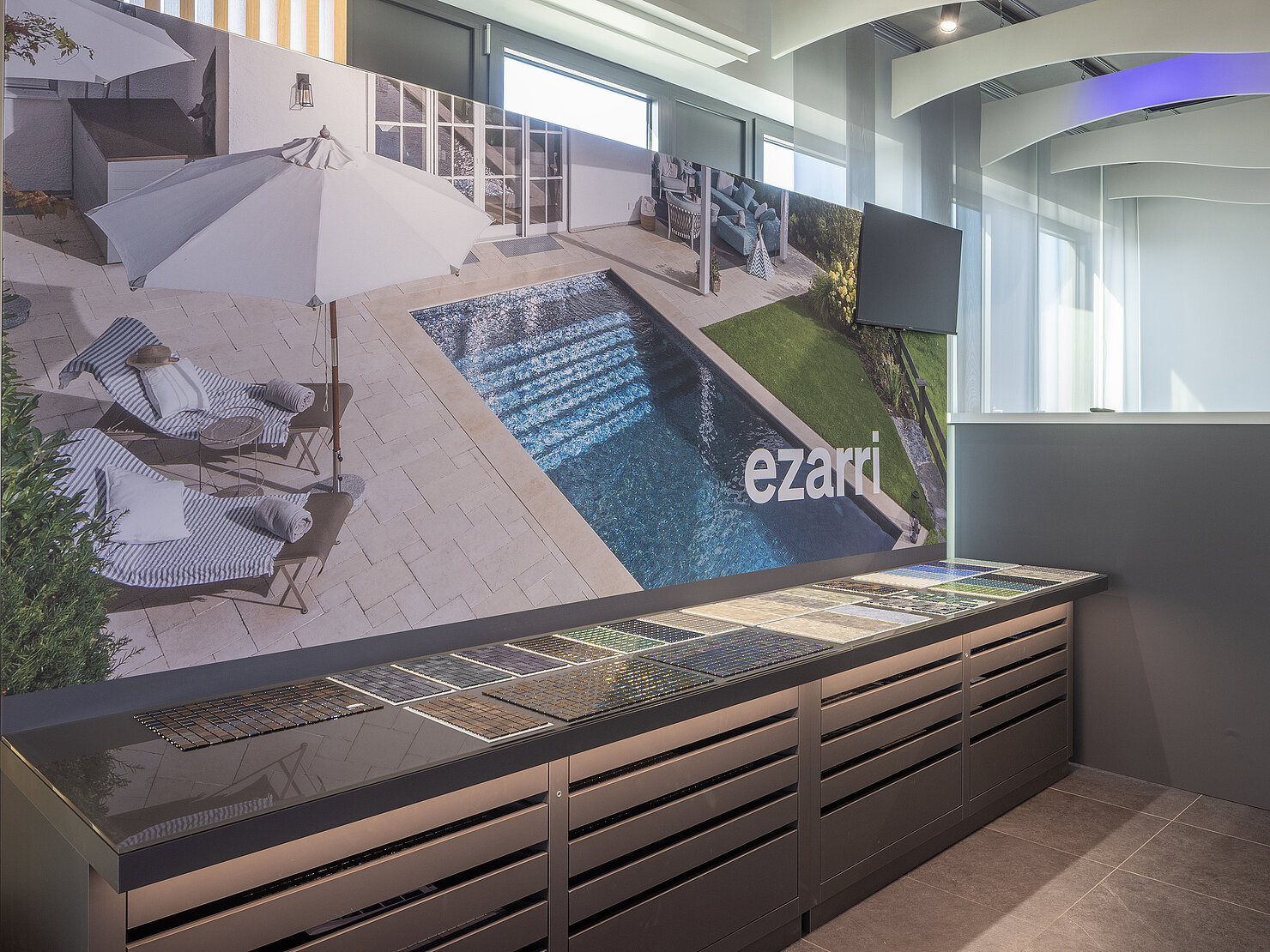 Erleben Sie in unserer Ausstellung in Berlin die faszinierende Farbwelt von Ezarri: hochwertige Glasmosaike aus recyceltem Glas, gefertigt in Spanien. Am Musterschrank können Sie die Fliesen im Original betrachten, Materialien vergleichen und Ihre Favoriten direkt für Ihr individuelles Projekt zusammenstellen.