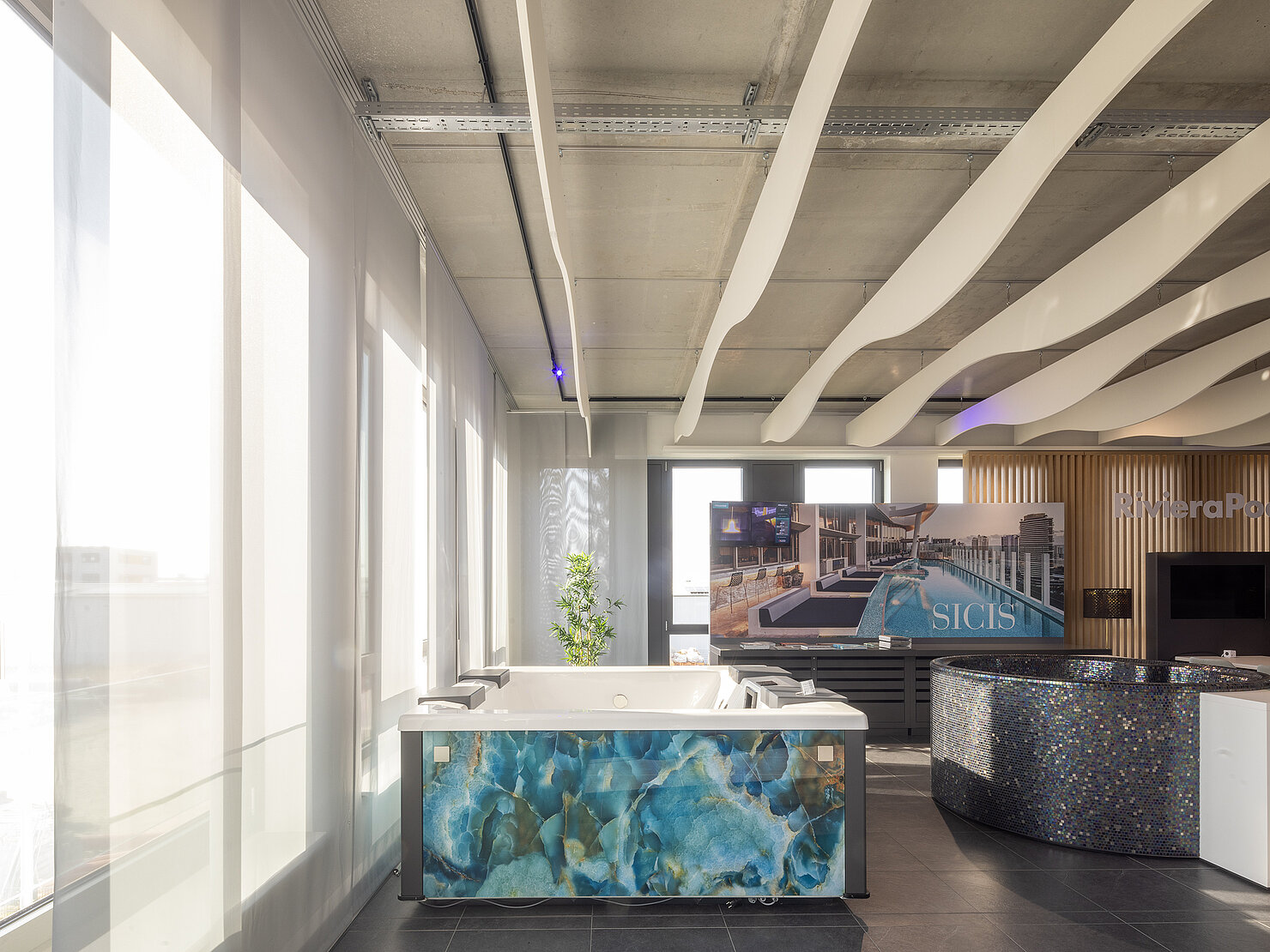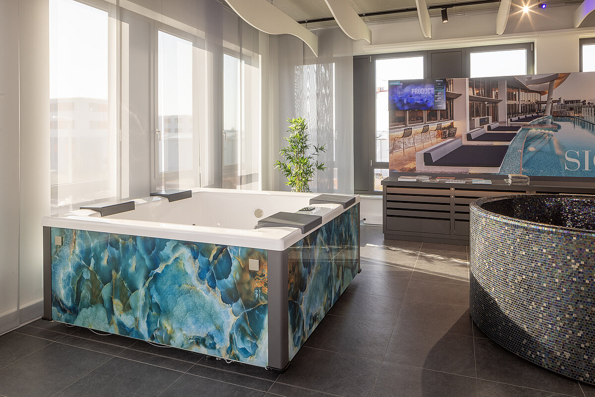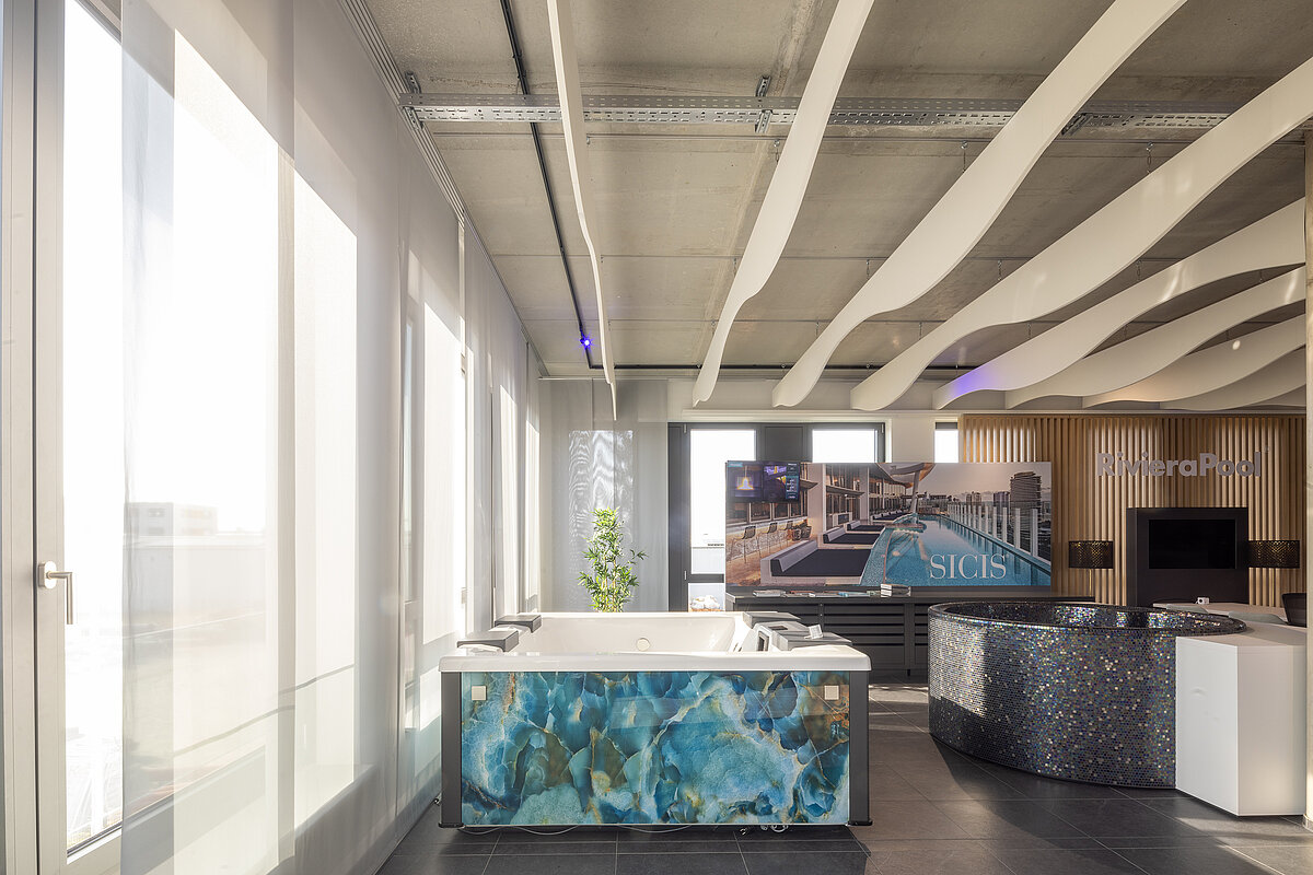 Entdecken Sie die Whirlpool-Vielfalt von RivieraPool – live in unserer Ausstellung in Berlin! Ob stilvoller MLine, exklusiver Strato 2.1 mit Vetrite-Glasdesign oder die elegante Roman Whirlpoolschale mit edlem Glasmosaik: Bei uns finden Sie inspirierende Wellnesslösungen für jeden Geschmack.